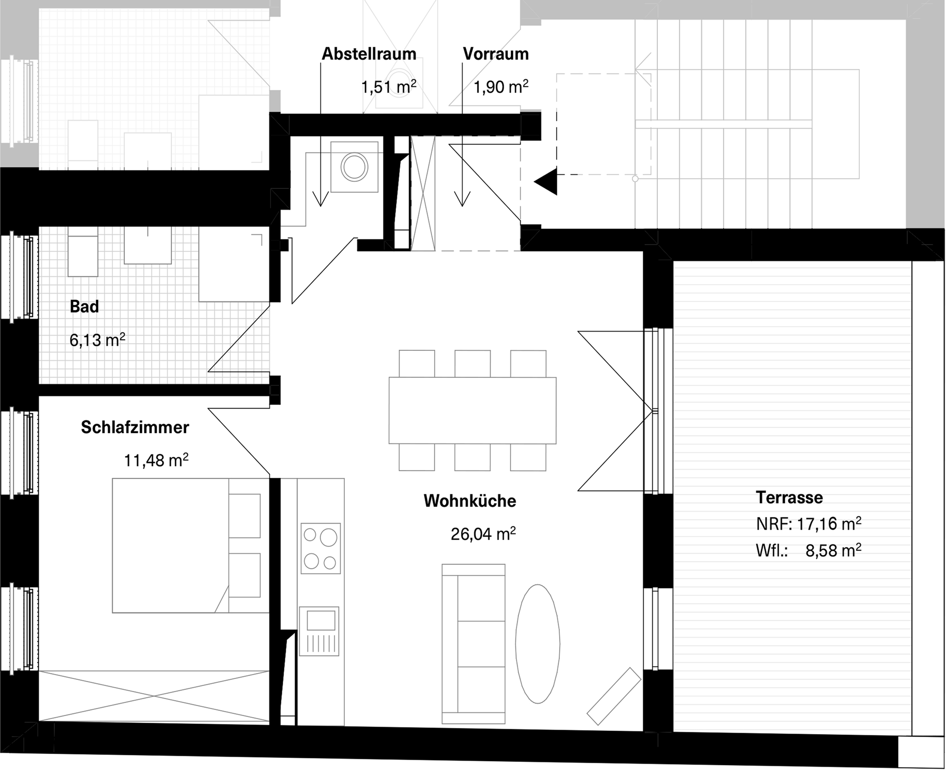| Dachterrasse | 0,5 | 11,98m² | 5,99m² |